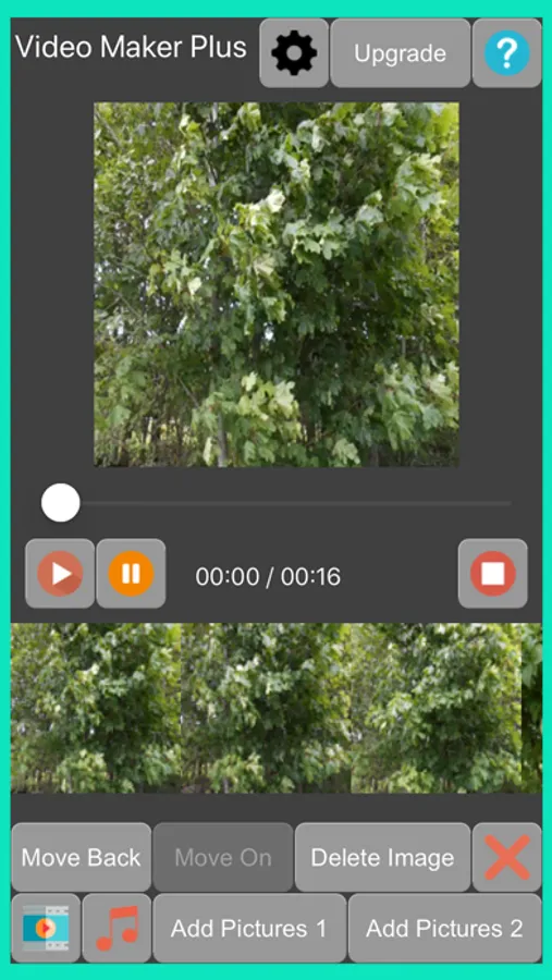 Video Maker Plus is a video-making program. The video is made of images added to the program. Music can also be added to the finished video. You can add up to 40 images to a video without upgrading.