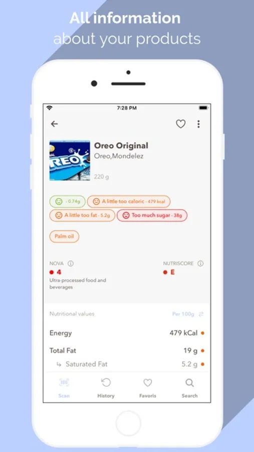 This application will allow you to scan/search your food products and get the nutritional values as well as similar products with better ratings, NutriScore, Nova classification, additives, allergens, and if the product is vegetarian, vegan and palm oil free.