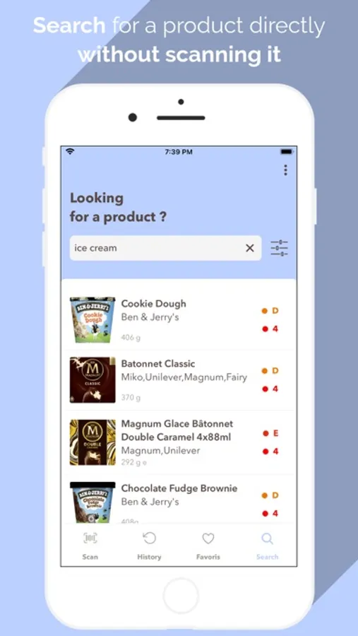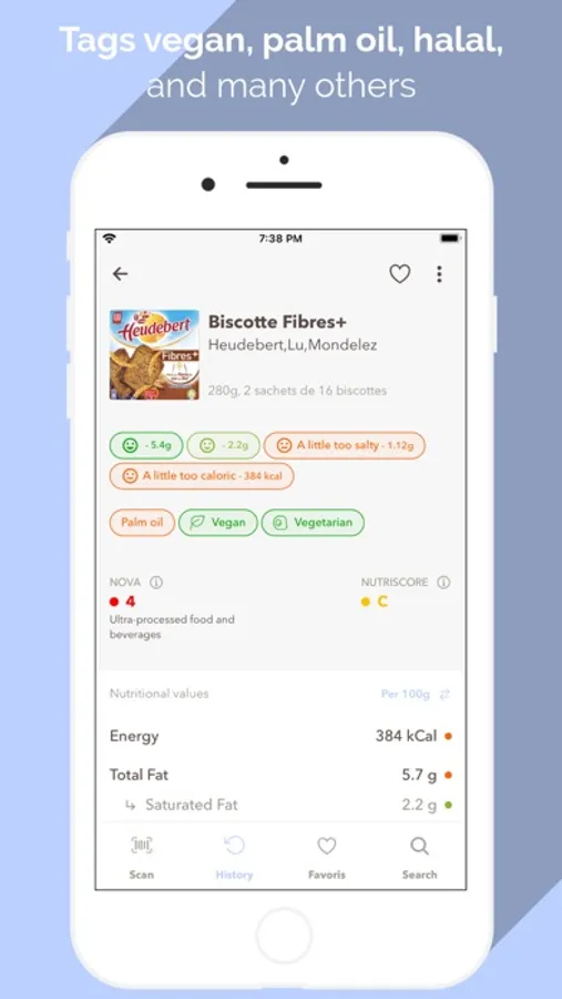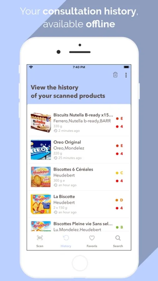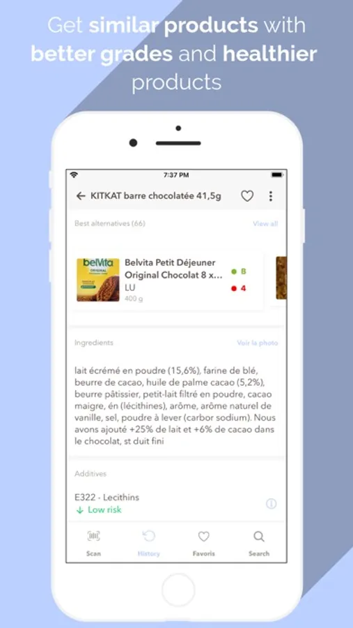 Search for products by entering the product name directly. Find the list of recommended products with better rating than the one you just scanned or searched. Access your product consultation history with or without a network. Find the Vegetarian, Vegan, with or without Palm Oil products in a wink thanks to the labels. Find the NutriScore score and the Nova classification for each product, the detailed nutritional values, the list of ingredients, the list and details on additives, allergens, as well as the daily allowances for women and men.