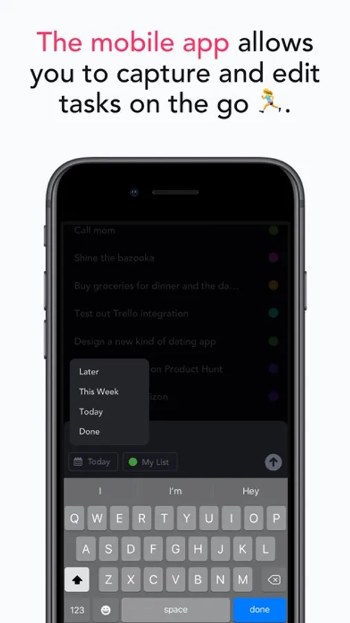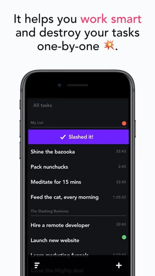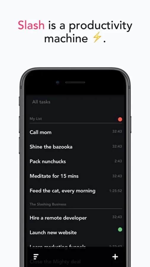 The "List" is a companion app for Slash, the desktop productivity machine. It helps add, edit and organize tasks while on the go and save for later. Get them ready for slashing sessions when you are back at your keyboard.