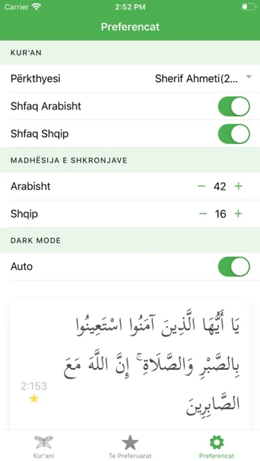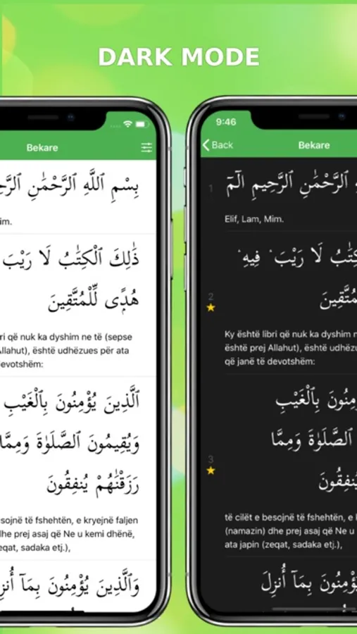 - Opcione flexible për lexim: zvoglim/zmadhim të shkronjave (Arabe / Shqipe) ose largimin e tërësishem të njërës prej gjuhve.