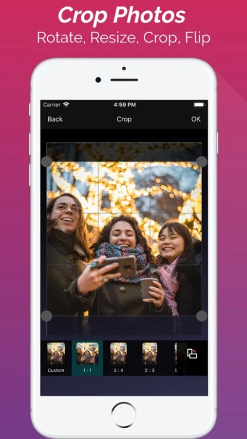 Square Pics Photo Editor let you add a different kind of background like color and pattern for making your pic more effective and unique from others.