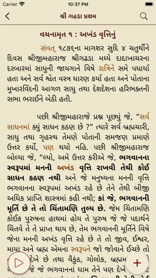 Recognizing the advent of digital media and its usefulness to the masses, Shri Swaminarayan Mandir Vadtal Sansthan with the blessing of Acharya Maharaj Shree Rakeshprasadji Maharaj initiated the Scriptures Digitization Project. As part of this project, the Vadtal Sansthan is introducing a mobile app “Vadtaldham Book” to bring you instant access to the scriptures anytime anywhere. The app has many convenient and useful features, like, ability to search words in the scriptures, the ability to ask questions in the discussion forum features to facilitate easy night reading, bookmark, etc.