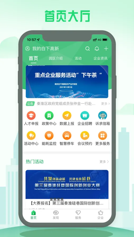 我的白下高新App,为南京市白下高新区内企业提供服务超市、科技金融、政策服务、统一缴费、物业服务、园区活动、协同办公、智慧停车、同园社交等服务。