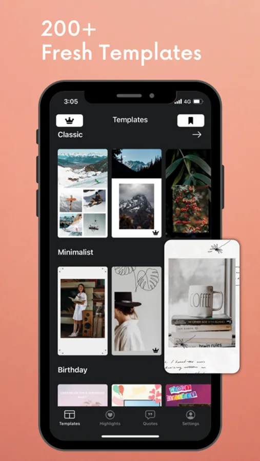 Diverse categories of templates to choose from including minimalist, light leaks, polaroid, bohemian, valentine, chritmas, social issues, trending issues, occasions, and many more.