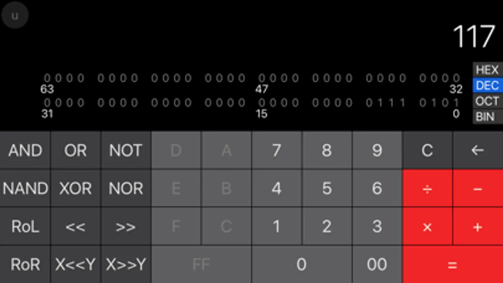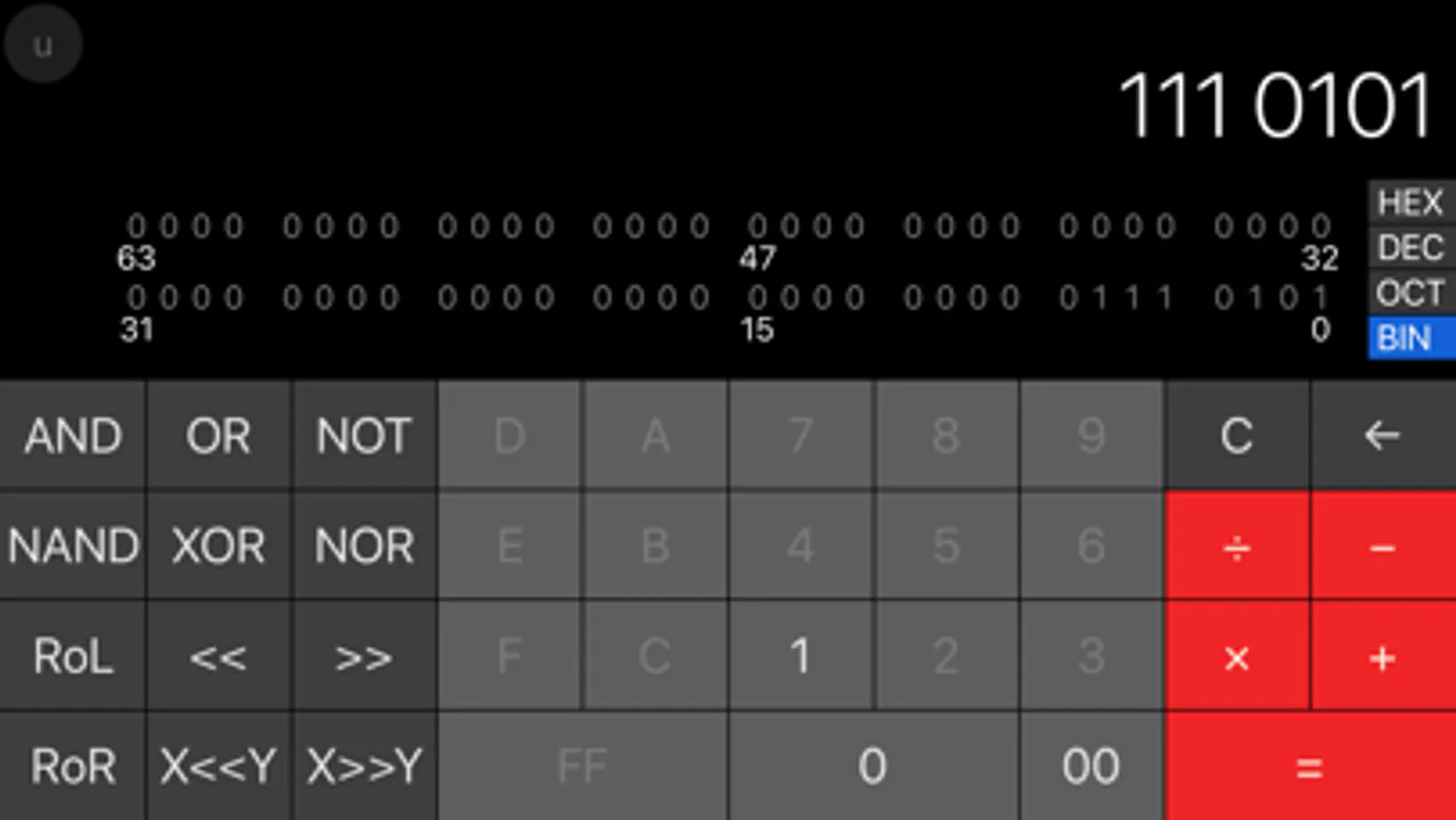 The programmer mode calculator support binary(BIN), octal(OCT), decimal(DEC) and hexadecimal(HEX), precise to 64 digits.
