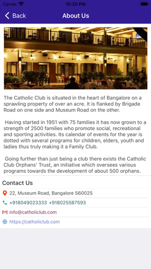 The Catholic Club is situated in the heart of Bangalore on a sprawling property of over an acre. It is flanked by Brigade Road on one side and Museum Road on the other.