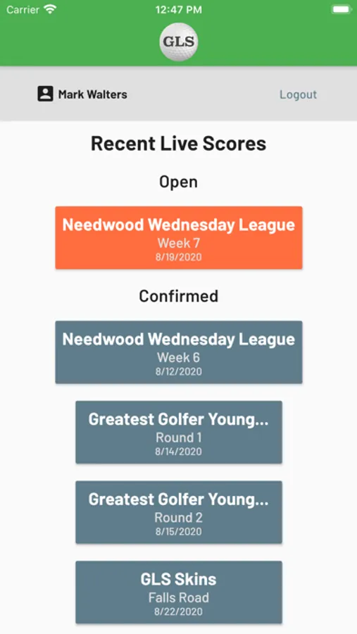 A live scoring mobile app for golf leagues and tournaments managed by GolfLeagueSite. Users can submit scores live on the course and see their competitors' scores via the live leaderboard.