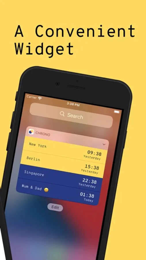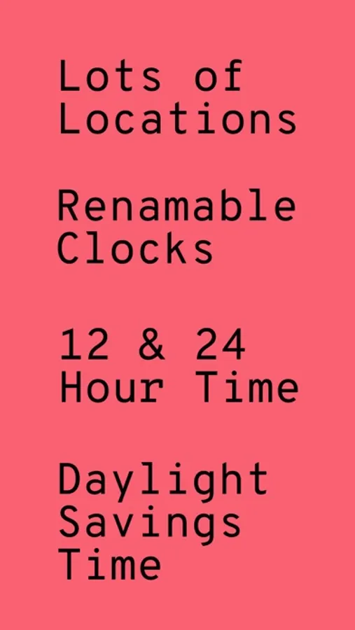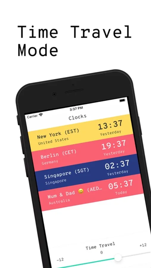* Compare time in other time zones and your own by scrolling into the future or back into the past