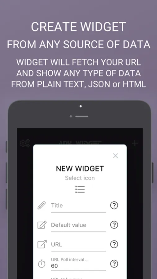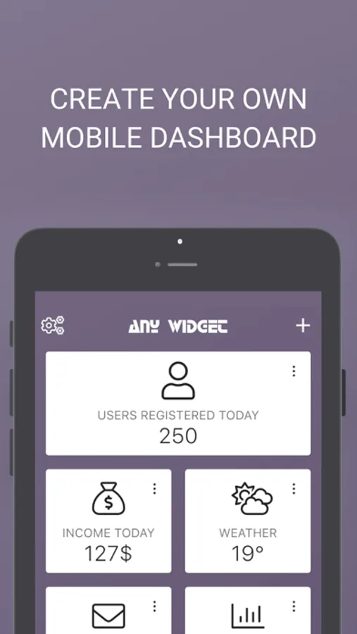 Create your own mobile dashboard from widgets created by you. Create any widget from any URL and display any information. Be in touch with your important information! Share created widgets with anyone you want.