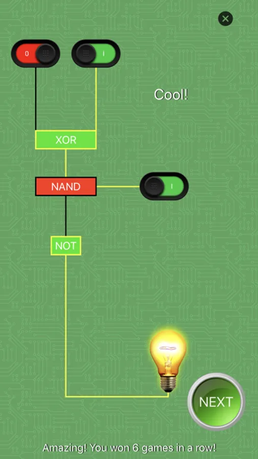 With Logic Game you will learn logical forms and boolean basics in a pretty fun and straightforward way. Don't forget to challenge your friends!