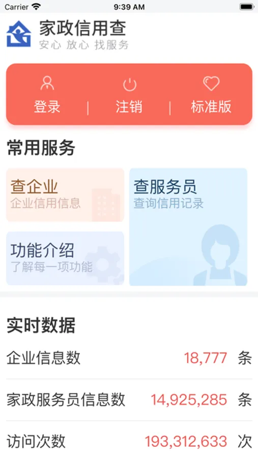 家政服务信用信息平台APP(以下简称家政信用查)旨在以大型家政企业特别是参加“百城万村”家政扶贫的家政企业为试点,逐步在全国范围内建立一套完备的、真实的、可持续的家政服务企业和家政服务员信用记录,为全国2,800万家政从业人员设立工作档案,建立并完善家政服务企业和家政服务员信用评价体系,建立健全家政服务全程跟踪监督管理机制,让消费者知情、服务可查询,满足人民群众美好生活的需要,推动家政服务业高质量发展。
