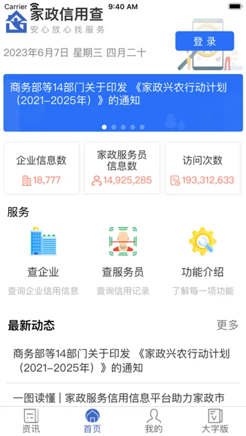 消费者无需注册、登录系统,可浏览家政行业相关政策措施、最新动态,可查询、浏览家政企业信用信息。