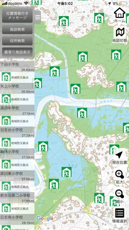 防災関連施設の配置を直感的に把握できます。