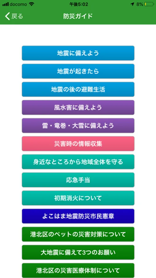 本アプリでは、港北区防災マップ、港北区ハザードマップ(洪水・土砂災害)のほか、各種防災情報の閲覧も出来ますので日頃の備えとして活用してください。