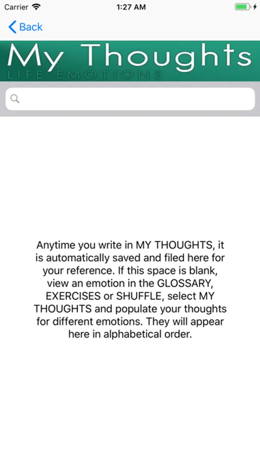 Life is lived through emotions. As we go after our goals, emotion becomes the substance of our experiences. Understand what moves you to tears, to anger, to joy and many, many more. This app contains over 400 emotions with specifically crafted definitions and exercises with an opportunity to express yourself in the My Thoughts section of each card. Exercises include “Releasing an Emotion,” “Strengthening Uncharted Emotions,” “Examining Our Feelings” and many more. Developing a vocabulary of emotion strengthens your confidence and brings value to your relationships, work, and life!