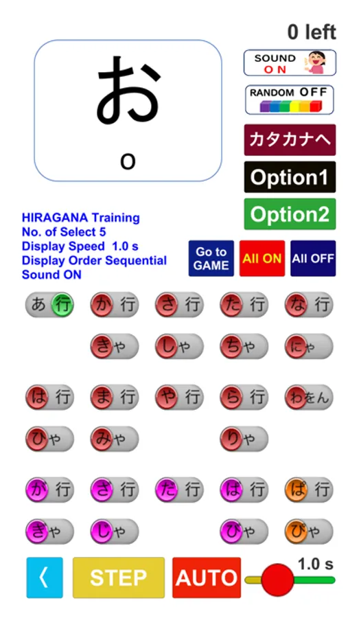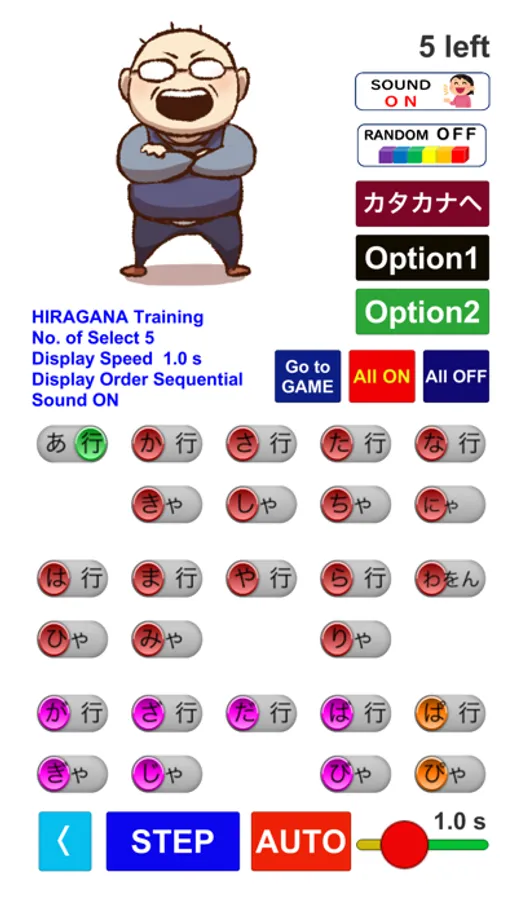 学習者が選んだ文字をベースに、勉強するためのゲームが用意されています。