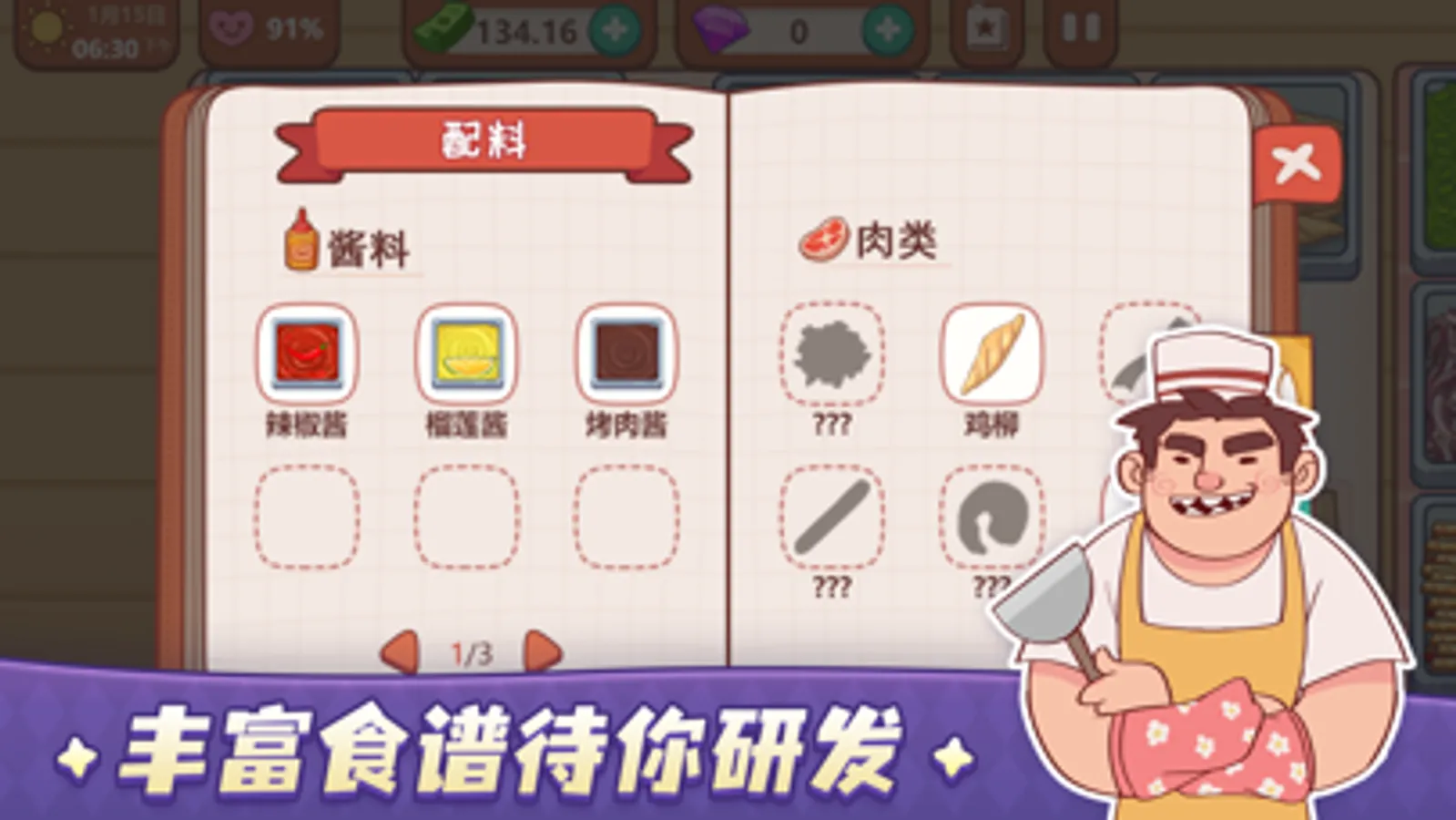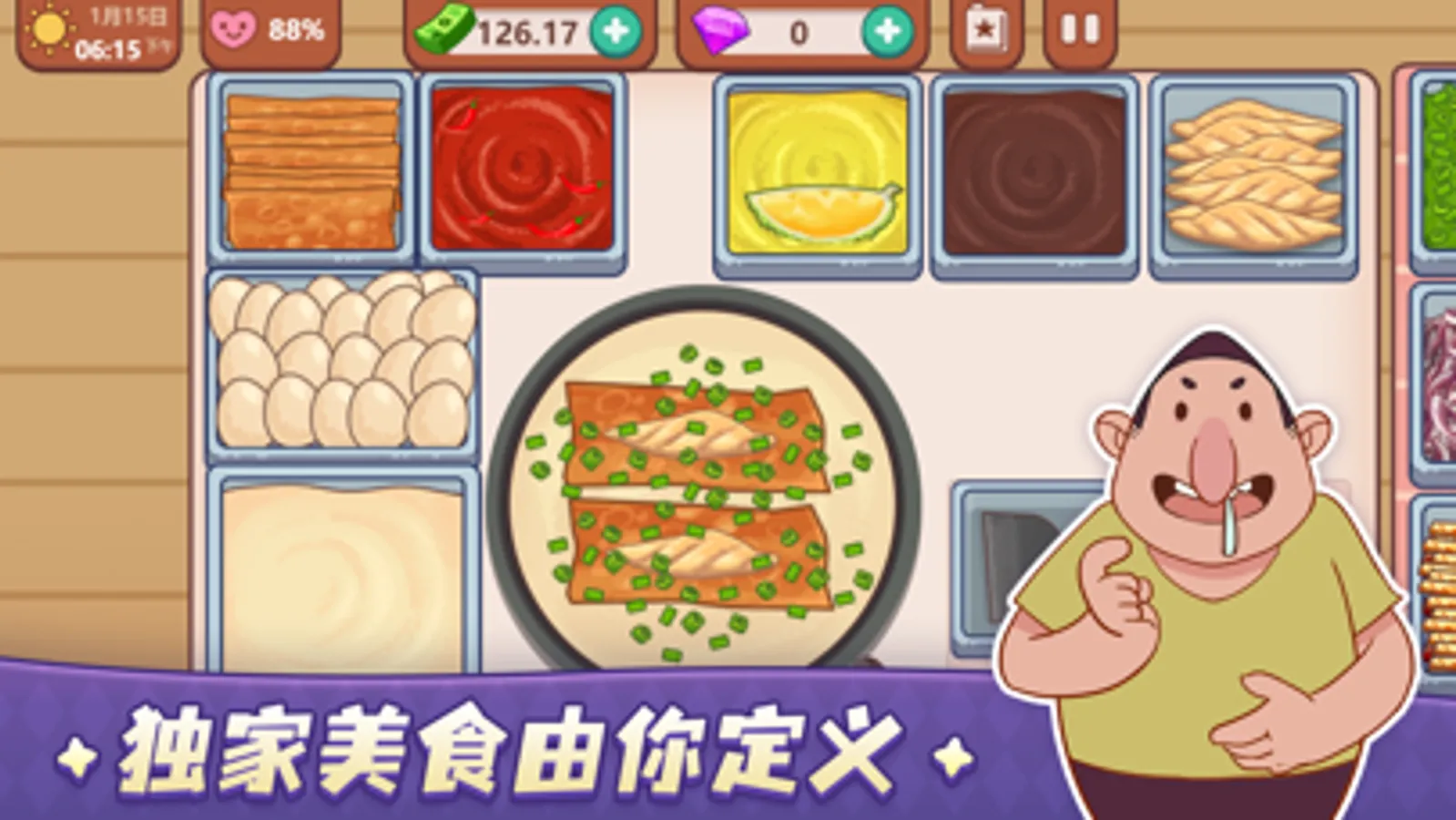 还记得路边摊的煎饼果子来一套吗?是否有想过买一个豪华全加无敌套餐?《可口的煎饼果子》可以满足你的一切幻想。在这款游戏中,你要接手国际煎饼大师的煎饼小摊,尽你所能去满足顾客的煎饼订单。通过完成订单、控制成本获取金钱从而升级店铺的原材料和设备,成为世界著名的煎饼果子大师!