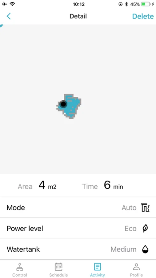 - Device positioning; you can view the robot's cleaning area and cleaning time information.