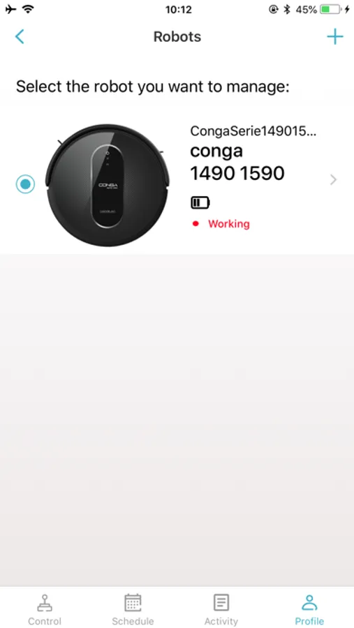 CONGA 1490 1590 is a smartphone application that connects to the robot vacuum cleaner.