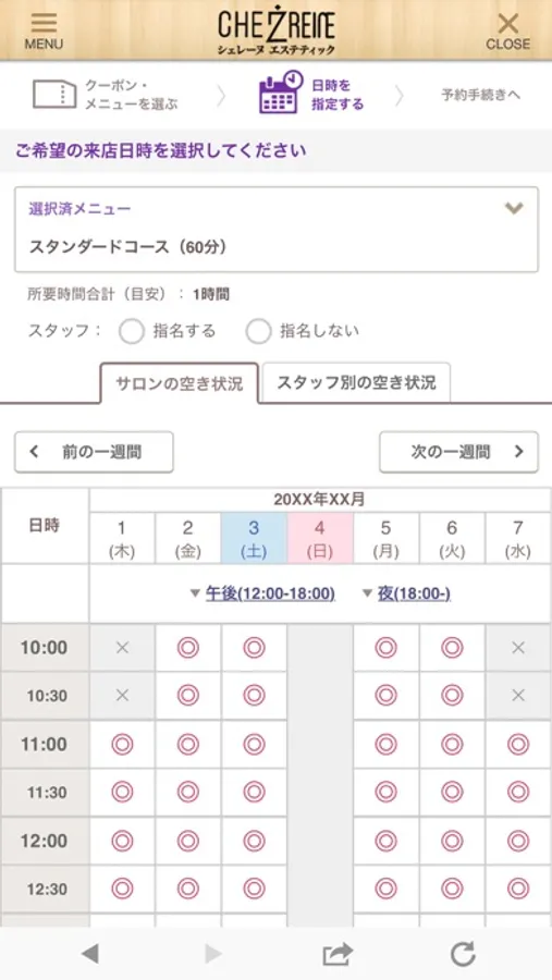 ご希望のメニュー・日時を指定して予約できます。安心してご予約ください。
