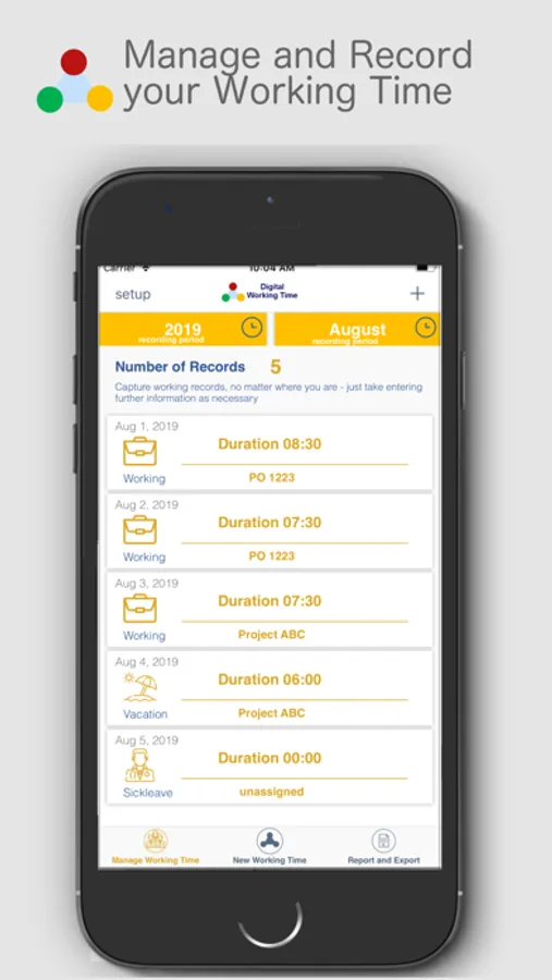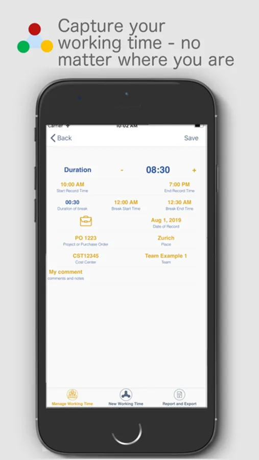 This app will help you! You can record your working time wherever you are, quick and easy, directly with your mobile phone.