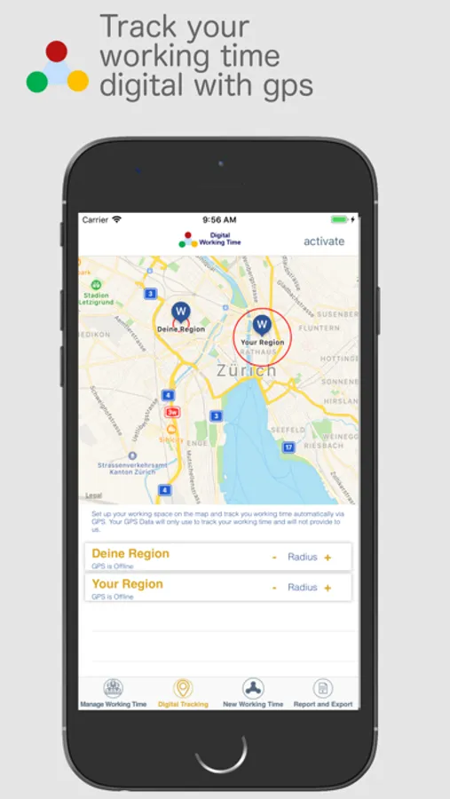 - Track your working time digital with gps. Your working time will be tracked automatically with gps.