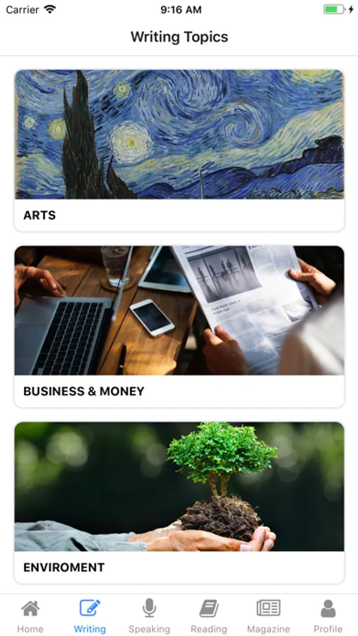 + Nội dung bài đọc bao gồm có format tương tự đề thi Writing Task 2, bao gồm dàn ý chi tiết. Nội dung bài làm bằng tiếng Anh. Trong đó ứng dụng sẽ nhấn mạnh các từ khóa, từ vựng quan trọng trong bài.