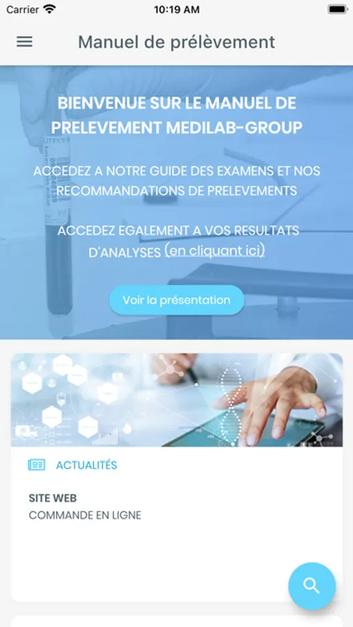 MEDILAB GROUP est une application médicale ayant pour objectif la mise à disposition d'un manuel de prélèvement à l'usage des professionnels de santé (Infirmiers, Biologistes, Médecins).