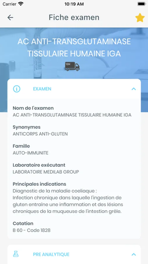 Afin de simplifier vos futures recherches, une mise en favoris des analyses est disponible.