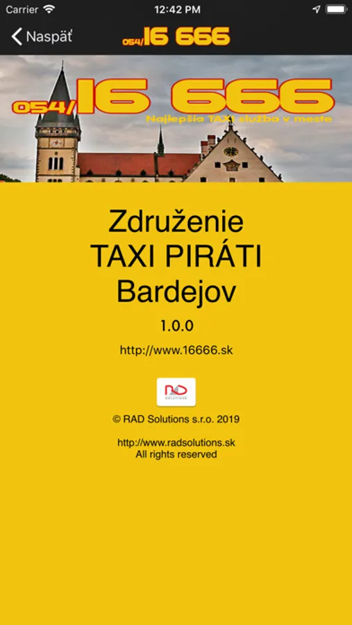 After many taxi drivers had made an agreement among themselves in 1999, a permission license for the biggest taxi service in Bardejov was accepted and got the official name "The Taxi Pirates". The main parking point was set right next to the "Republika hotel". The change of phone numbers from the casual one to shorten forms was made in 2001 and it has been in use till nowadays. But anyway, the greatest change came in 2005 when the company decided to sell the vehicles directly to its drivers. They started working on their own, found some more employees and have been developing their business. In 2013, the another step forward came for our company. We became the unity of concession owners. The amount of vehicles was increased and has been led in modernisation according to customers' requirements. Since 2014 we have been using GPS system controlling all our vehicles non stop for 24 hours a day.