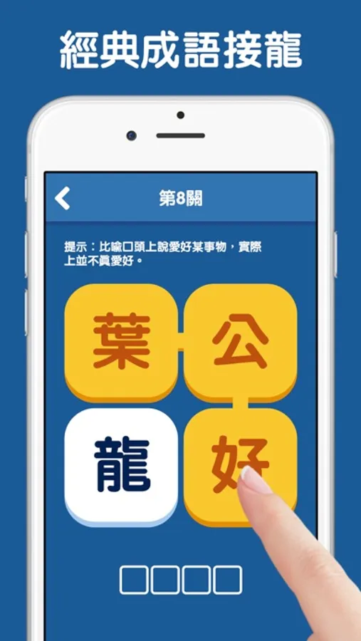 成語是中國文化悠久歷史的沉澱。成語接龍作為古已有之的智慧型語言文字遊戲就一直深受男女老少的喜愛。成語接龍填填看,經典遊戲新的玩法。告別以前枯燥單調的接龍方式,一起來體驗花式成語接龍的魅力吧!