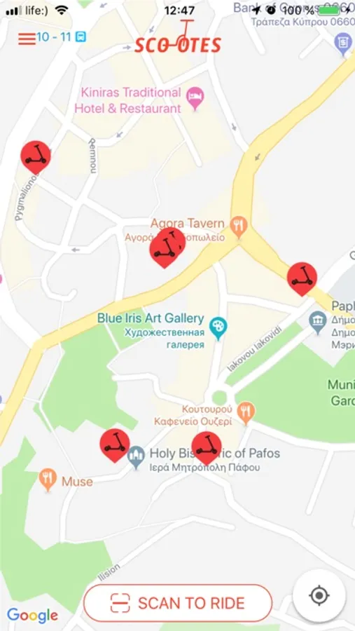 Enjoy the ride and explore Cyprus effortless with one of our electric scooters through the Scootes app. Scootes is the number 1 app in Cyprus created for electric scooters sharing purposes. With a few easy steps you can unlock and ride one of Scootes electric scooters and save time from your trip to Cyprus or to reach a destination in rush hours.