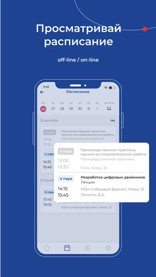 - поиск преподавателя и ознакомление с его нагрузкой: время, место, дисциплина и участвующие в занятии группы.