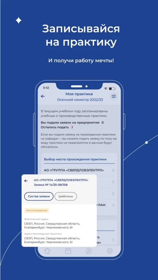 - отслеживайте статус своего отклика и получайте шаблоны необходимых для прохождения практики документов.