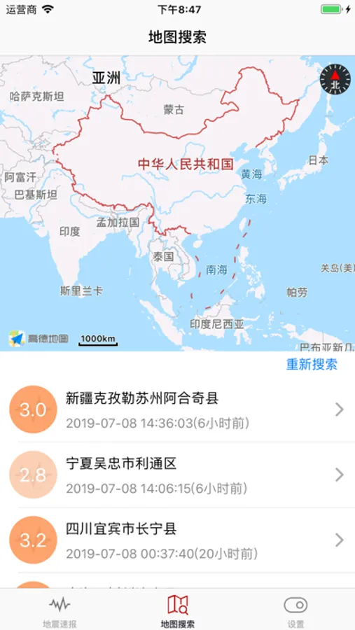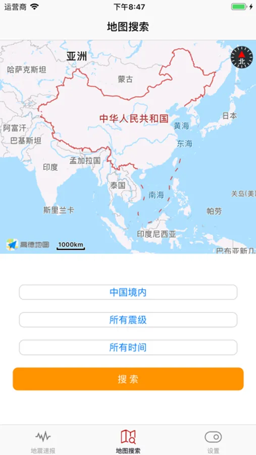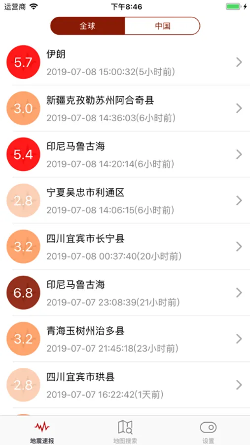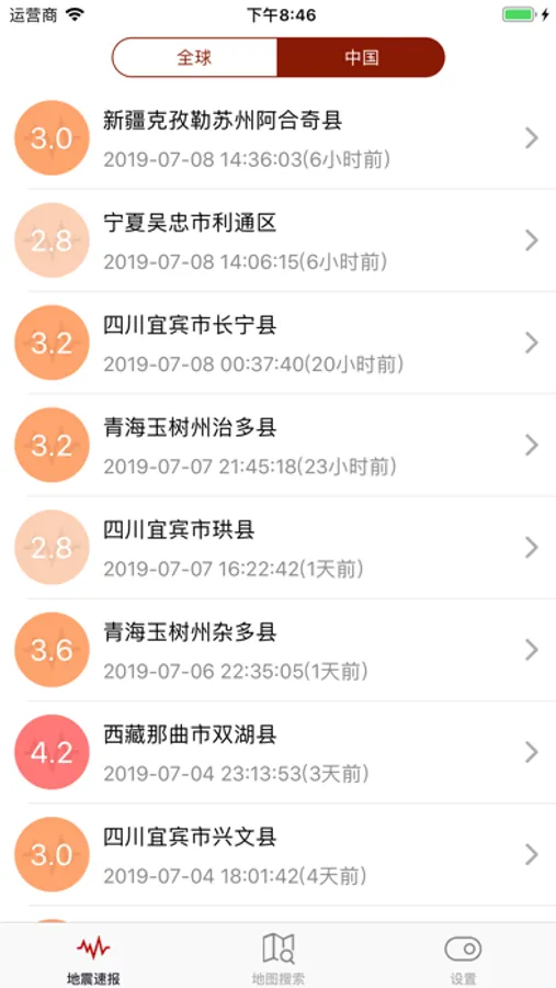 用户可根据实际需要设置接收全球范围的地震通知还是中国地区的地震预警,或是关闭通知功能。