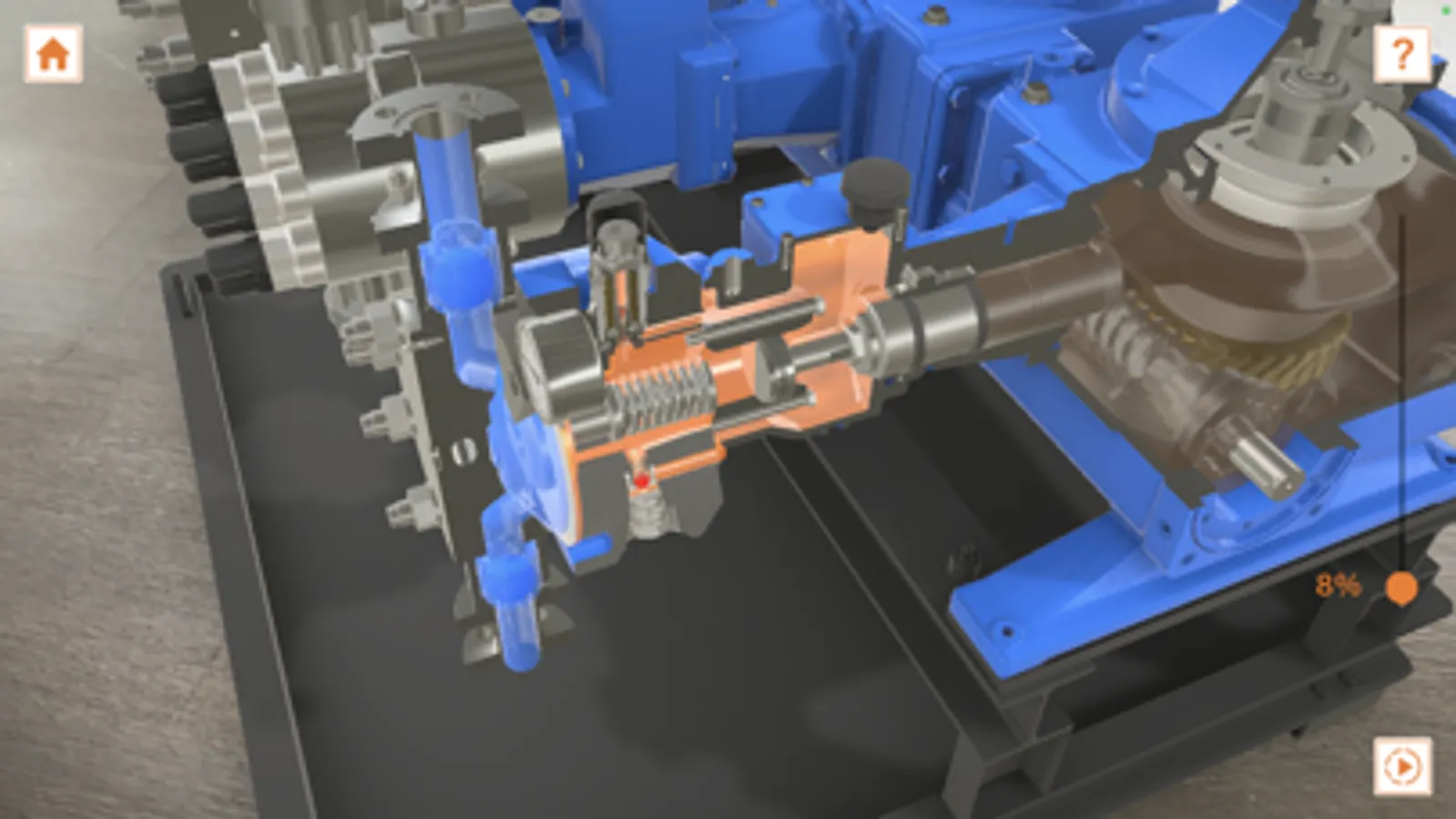 Have a look at the complex structure of the pump´s inner parts in detail; moreover, the entire operation of the pump is visualized and various operations are animated to show the fundamental operating principles of the pumps and the reaction in exceptional situations.