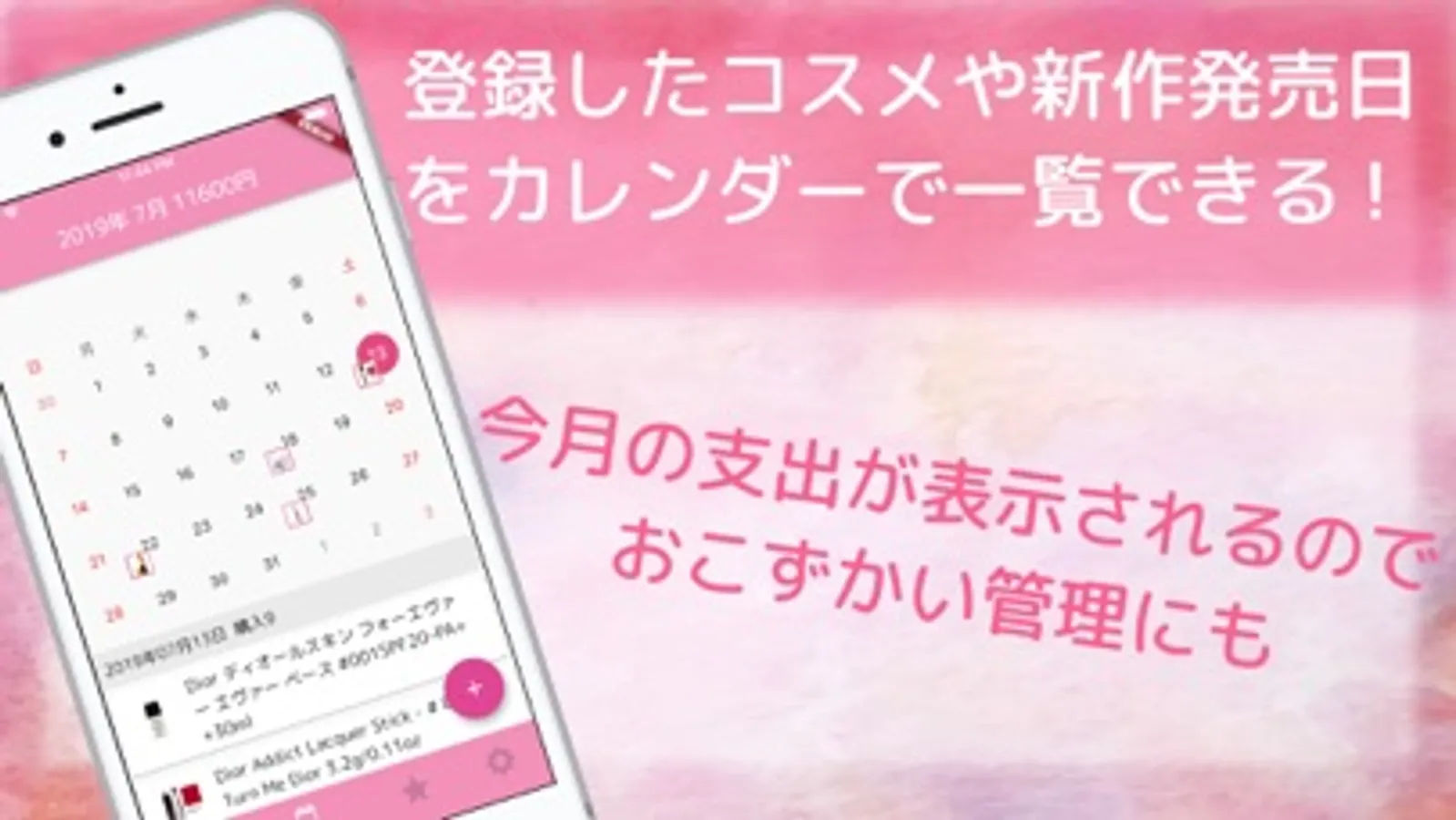 ◇カレンダーは購入したコスメの購入日、欲しい物リストの発売日を表示することが出来ます。