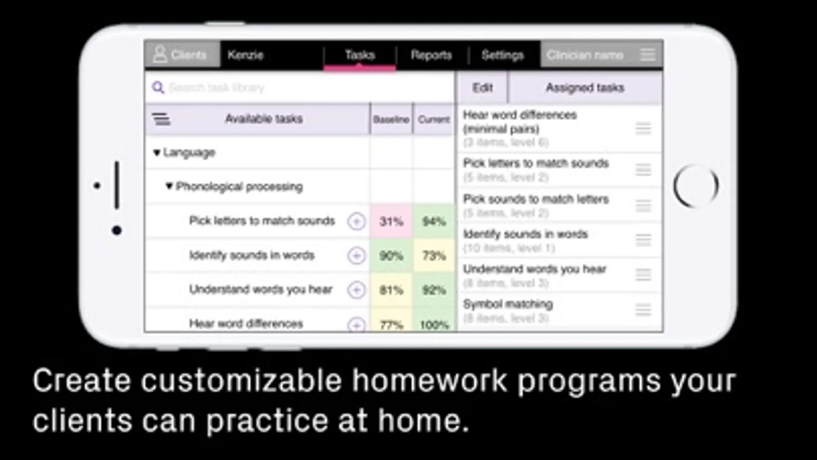• Improve outcomes by creating customizable homework plans for your patients to work on between clinic sessions and after you discharge them with Constant Therapy.