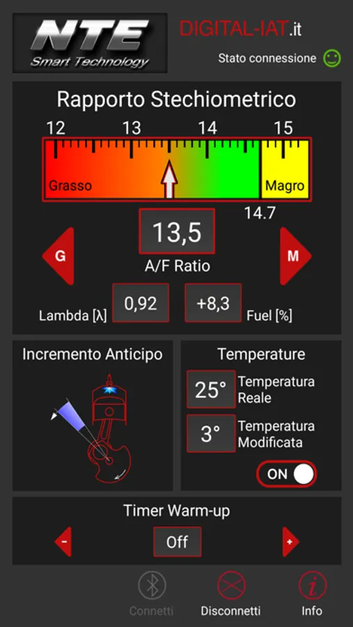 La centralina DIGITAL-IAT gestisce in modo automatico anche l'anticipo di accensione garantendo in modo molto semplice un funzionamento regolare del motore ed anche un ottimo incremento di prestazioni.