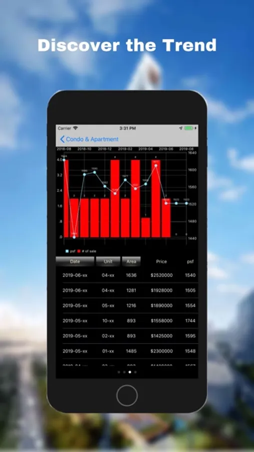 3) Easily check if there are enough transactions of units with preferred size and visualize the market trend in the past years.