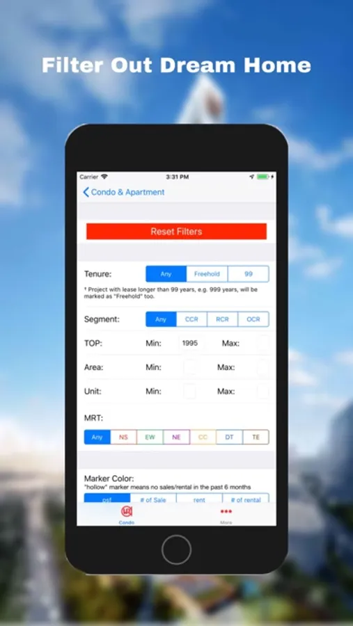 1) Easily locate the condominiums/apartments by tenure, market segment (CCR/RCR/OCR), TOP year, nearby MRT lines. No need to ask others any more "where to find Freehold projects around XXX area less than 10 years old" even if you are not familiar with the area.