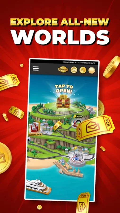 Experience the new PCH+ World Map where you have the power to choose your own path at earning real prizes!! Select different themed Sweepstakes Worlds, each with their own unique experiences and prizes. Complete each world to unlock treasure chest rewards for more prize entries and other giveaways!