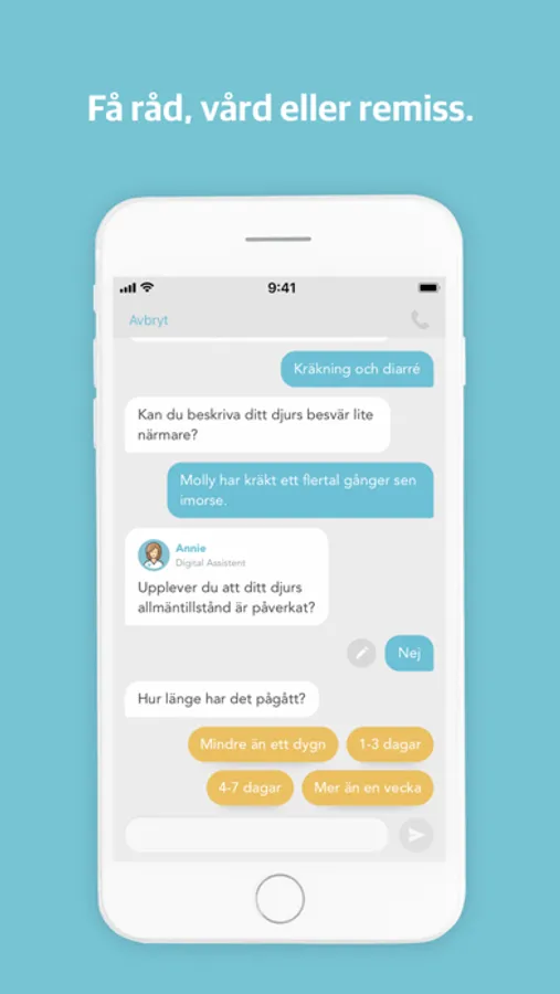 Med vår app får du som hund- och kattägare råd och hjälp av våra veterinärer utan att behöva boka tid. Du kan låta din hund eller katt vara i sin trygga miljö och välja kontakt med oss via chatt, röst- eller videosamtal. Enkelt och smidigt!