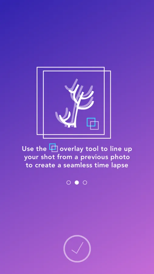 • Show/Hide an overlay of your last photo so that each new photo lines up precisely with the last one you took