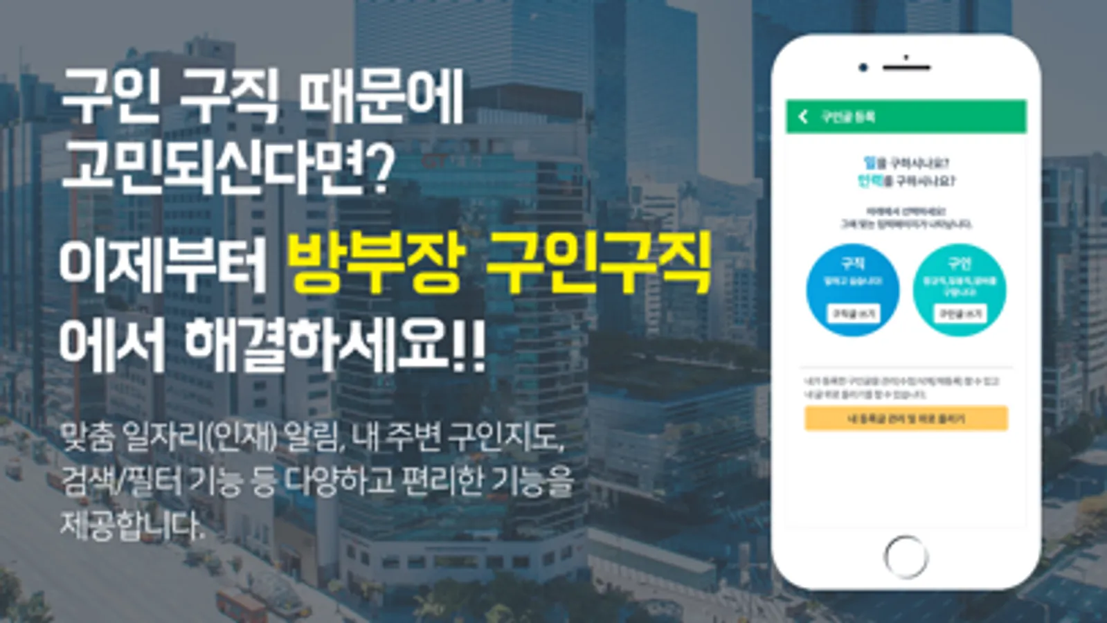 : 대기업,중소기업,공기업,학교,기타 산업체 등 분야 상관없이 사무직/생산직/서비스직/건설일용직/단순직까지 방부장 구인구직에서 필요한 인재를 구할 수 있습니다.