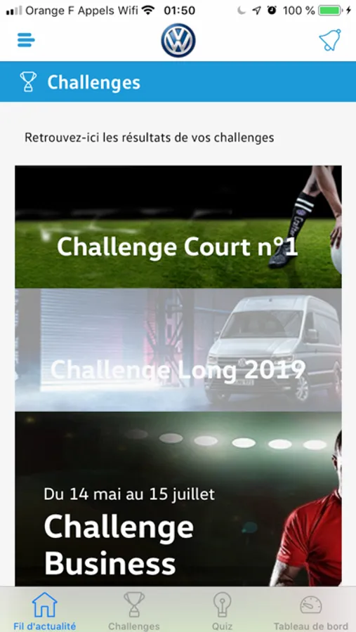Participez au challenge Service Volkswagen Véhicules Utilitaires grâce à cette appli qui vous permettra de répondre aux quiz, piloter votre performance et suivre votre avancée en un clin d’œil. Ne ratez plus une seule information et mettez toutes les chances de votre côté pour remporter les beaux lots mis en jeu.