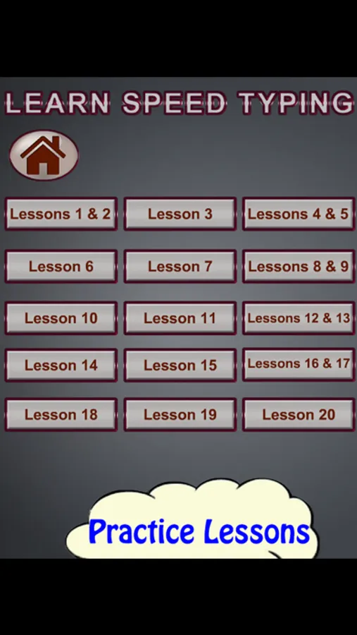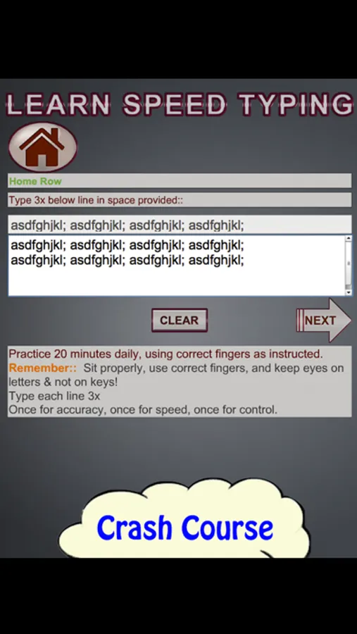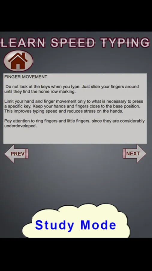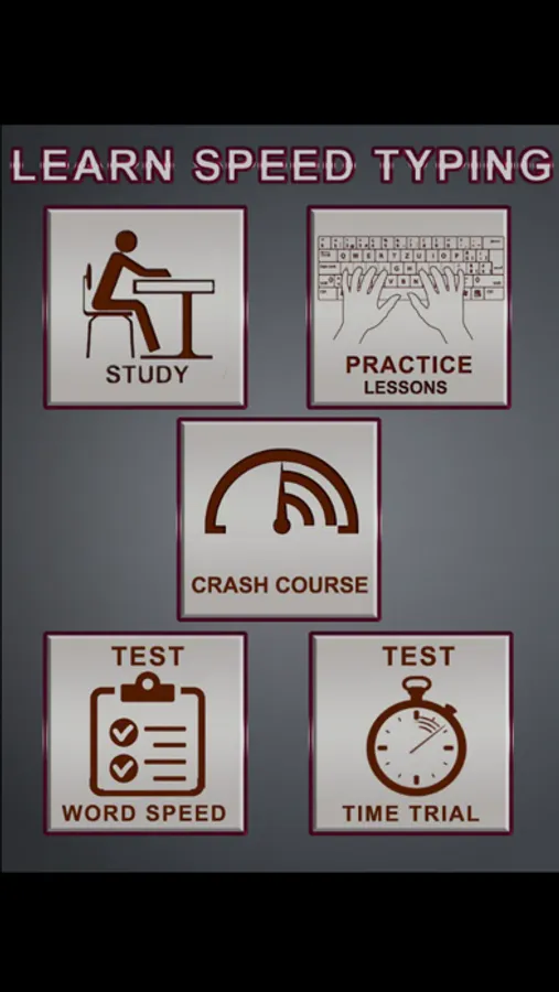Learners can choose between learning how to type, practice your touch typing skills, crash course for quick learning or taking a test to test their typing speed. In all cases, instruction is provided in a fun, visual format utilizing an intuitive touch interface.