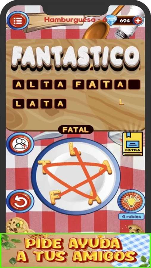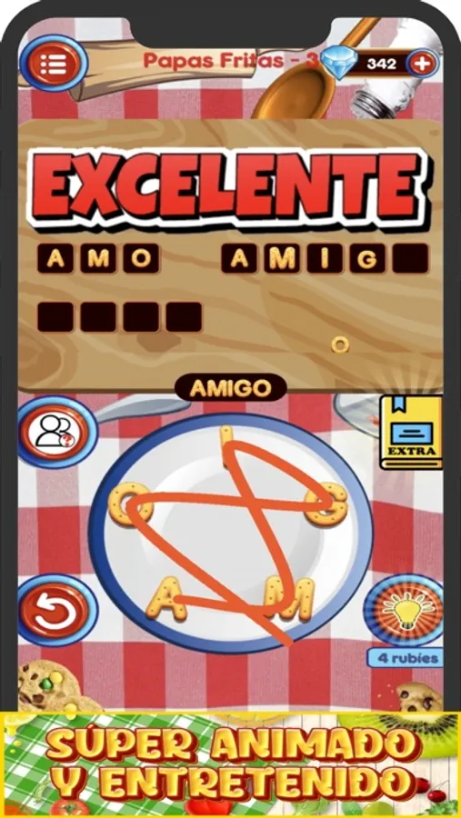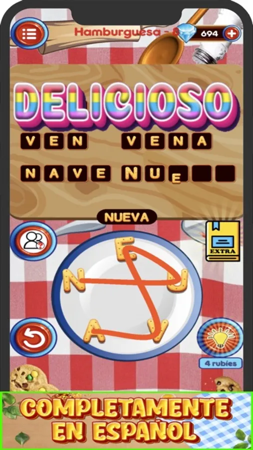 Find the hidden words using the available letters. Connect the letters to find as many words as you can. You can ask your friends for help directly from the game or use the rubies to find the most difficult words. This word game is very funny and challenging for the brain, it will help you improve your word memory skills, but the best thing is that it is 100% in Spanish.