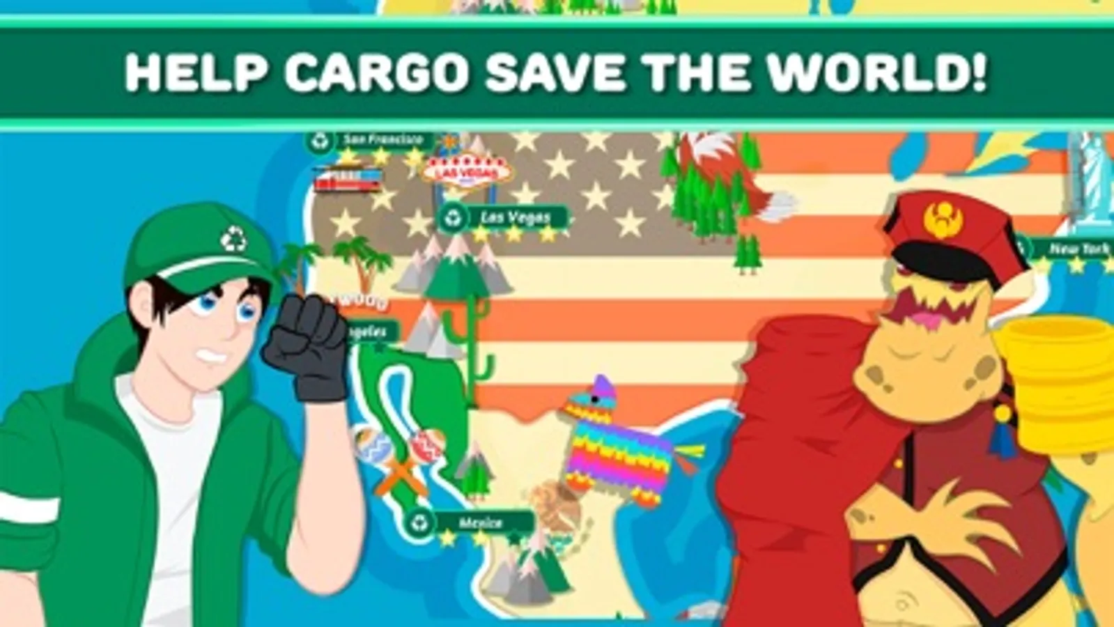 It’s up to Cargo and R-Cycle to travel around the world and foil the wicked plan, by recycling litter and capturing the litter Bug Agents.